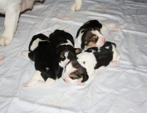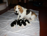 Unser Wurf F2 vom 02.06.2010Tricolour Beagle Welpen werden scharz / weiß geboren, die braune Farbe kommt erst später. Mutter: Winnie von Amade AustriaVater: Kalimero vom Grossebersdorfer RebstöcklWelpen: 1 Rüde: Franky Boy3 Hündinnen: Fine English Toffee, Fire and Ice, Freestyle Lady