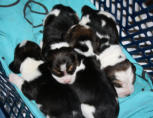 Unser Wurf F2 vom 02.06.2010Tricolour Beagle Welpen werden scharz / weiß geboren, die braune Farbe kommt erst später. Mutter: Winnie von Amade AustriaVater: Kalimero vom Grossebersdorfer RebstöcklWelpen: 1 Rüde: Franky Boy3 Hündinnen: Fine English Toffee, Fire and Ice, Freestyle Lady