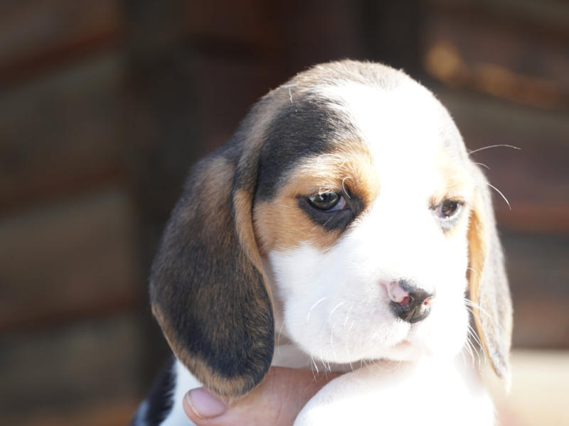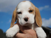 Tricolour Beagle Welpen werden scharz / weiß geboren, die braune Farbe kommt erst später.